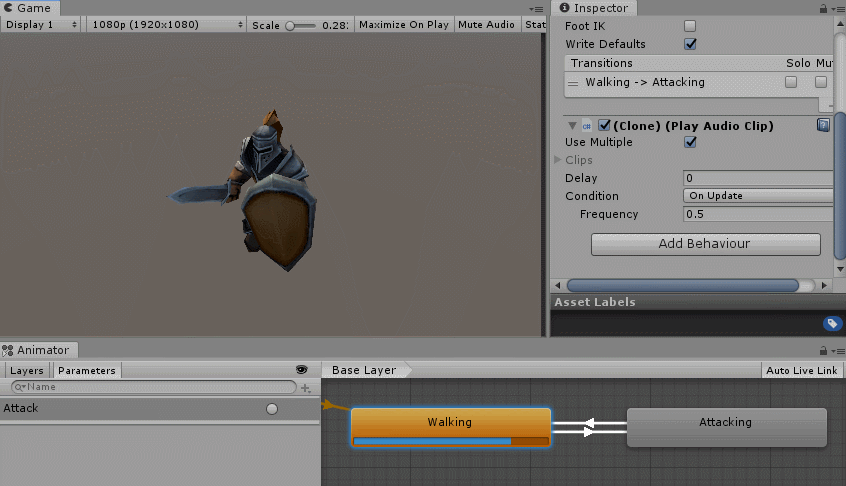 2. Click on the AddBehaviour to the left and select PlayAudioClip